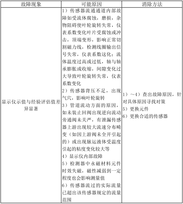 傳感器長期使用因軸承磨損等原因,儀表系數(shù)會發(fā)生變化,應(yīng)定期進(jìn)行離線或在 線校驗(yàn)。若流量超出允許范圍,應(yīng)更換傳感器。